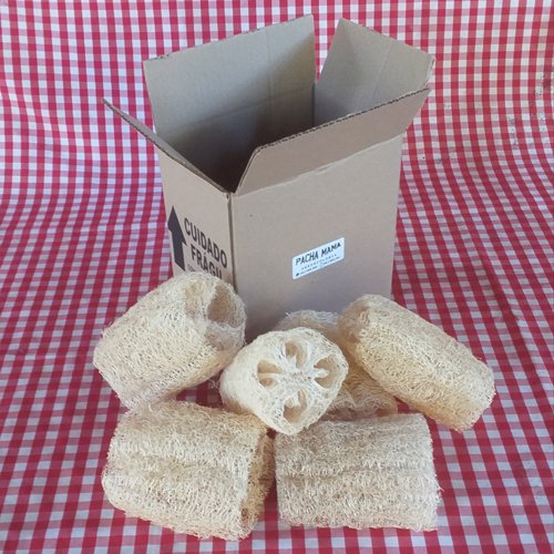 A Bucha Vegetal Pacha Mama Agroecologia nasce de cultivos conduzidos em Sistema Agroflorestal Agroecológico, tanto na própria chácara quanto por Famílias Agricultoras do Projeto Ubuntu. Após a colheita, realizamos a secagem, a seleção e o corte das unidades. Em seguida, organizamos os conjuntos com seis buchas medindo aproximadamente 13 cm x 8 cm cada uma.
