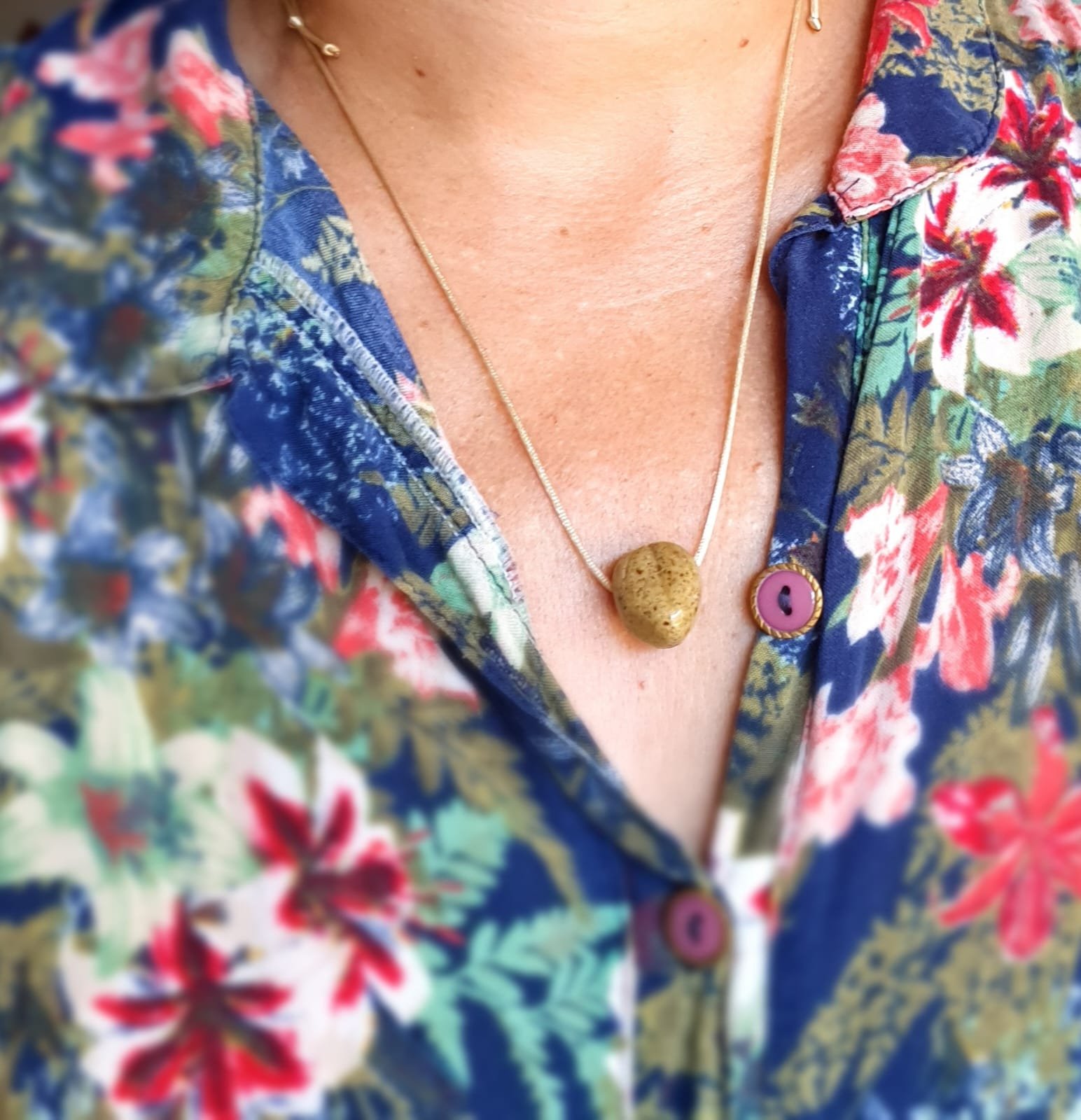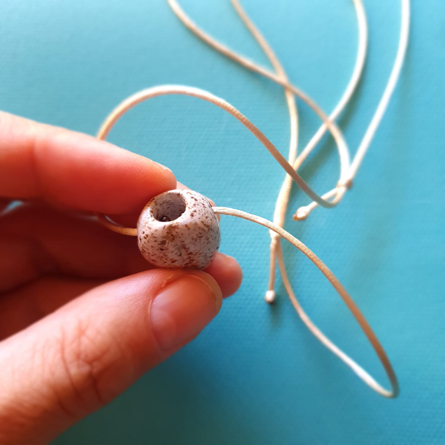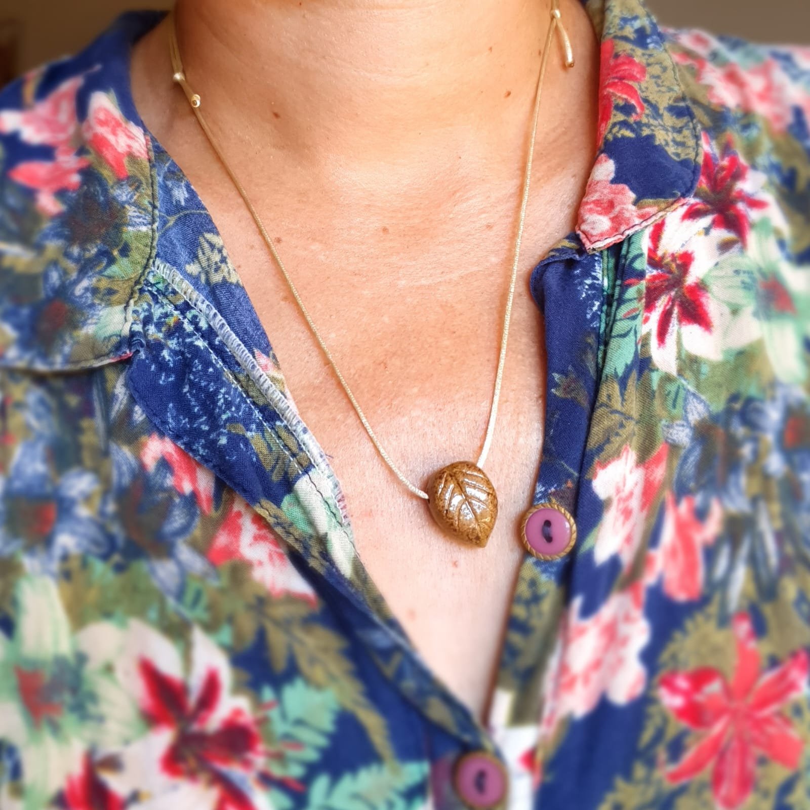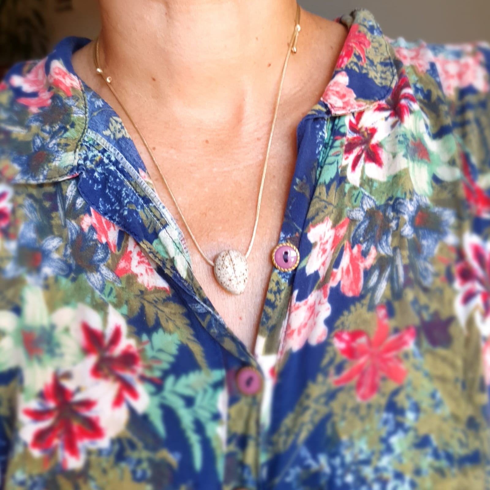 O pingente é produzido em cerâmica artesanal de alta temperatura. Esse processo garante resistência e estabilidade à peça. Além disso, a cerâmica apresenta características adequadas para uso com óleos essenciais.