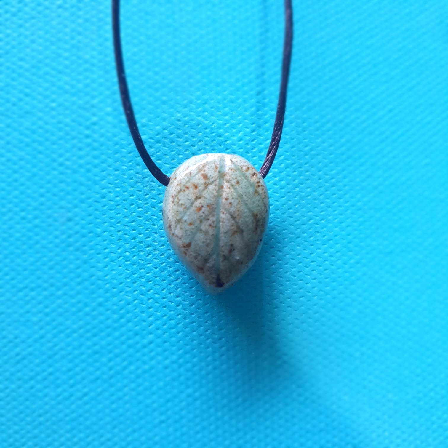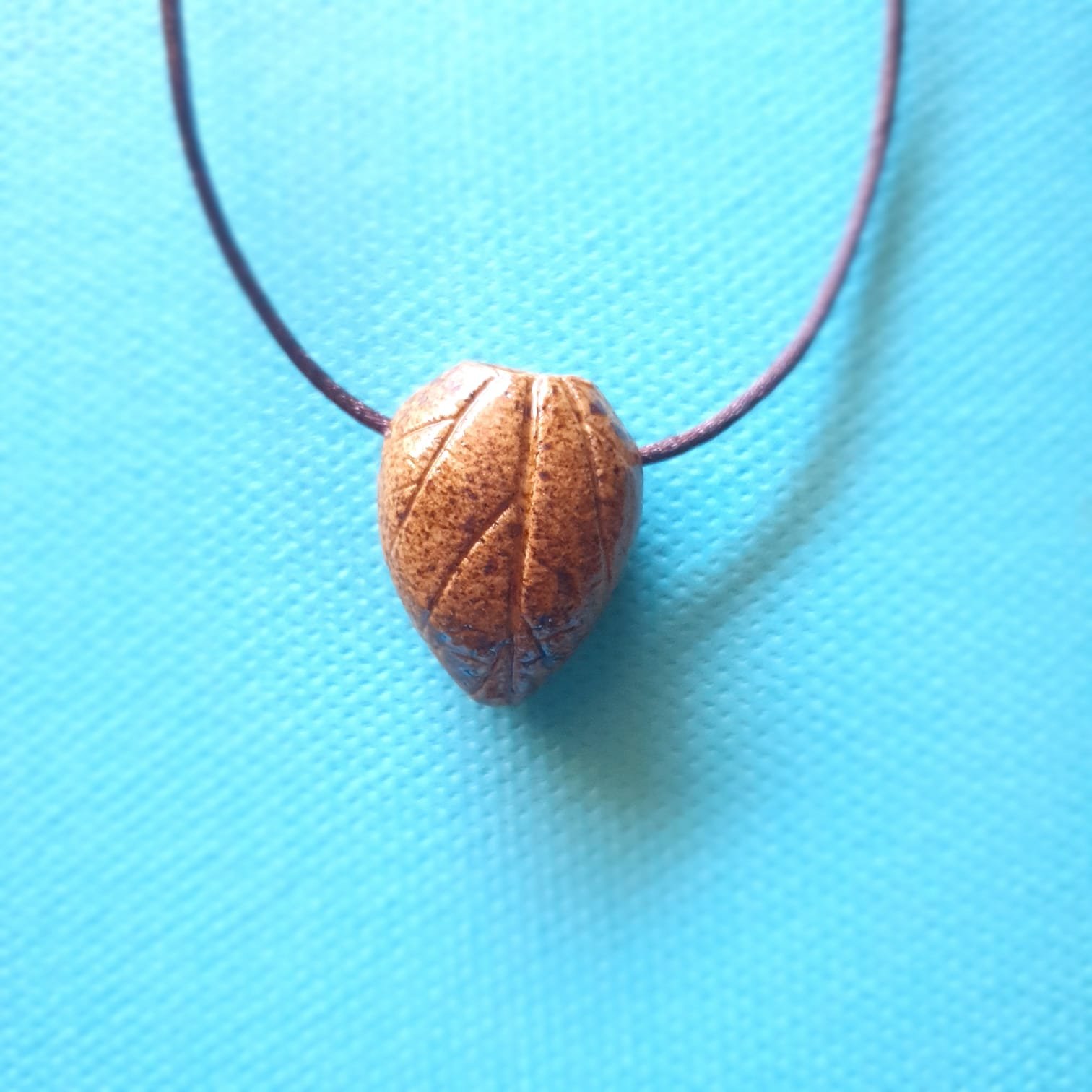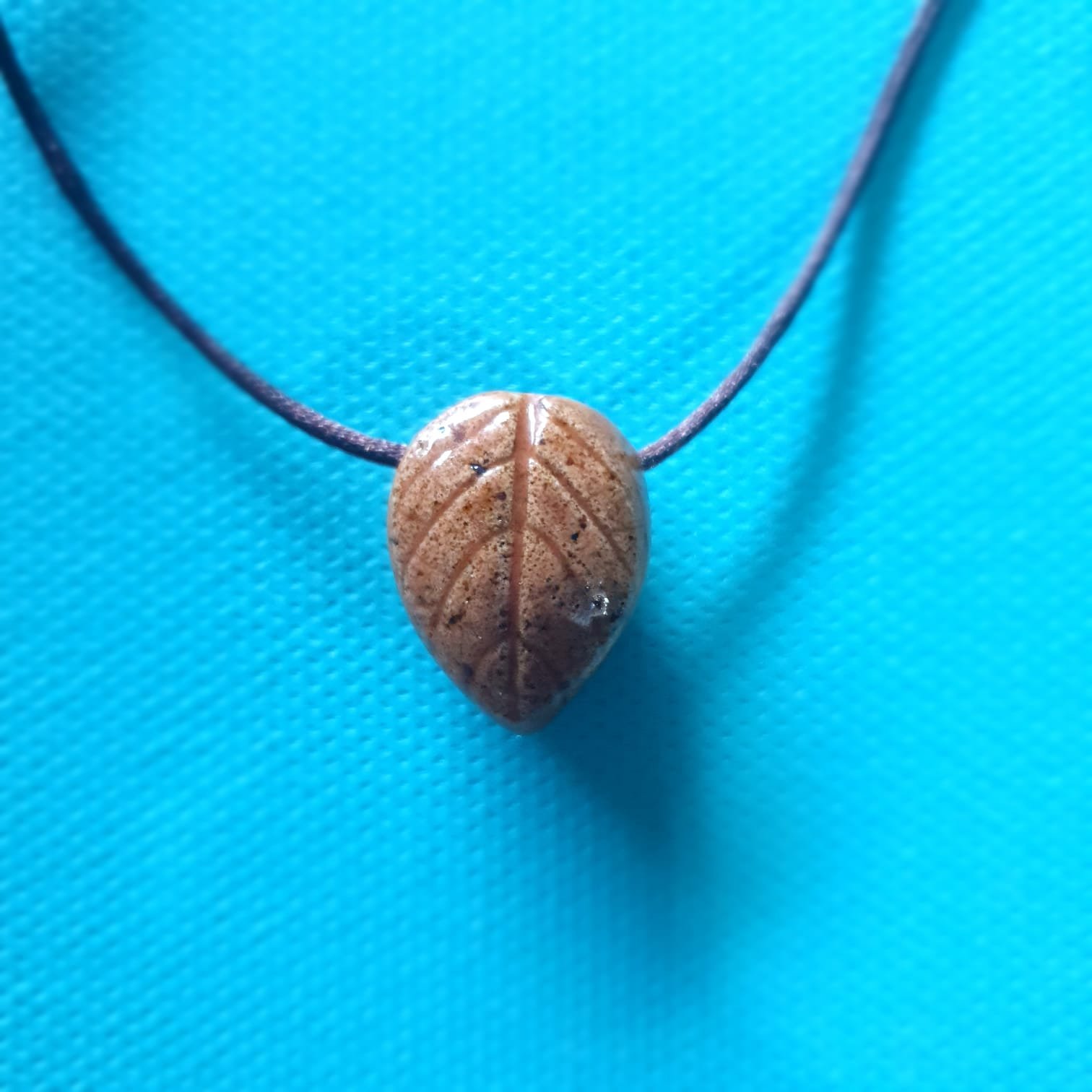 O Difusor Pessoal Folha Barro Blue é um pingente de cerâmica projetado para receber uma pequena poma de algodão embebida do óleo essencial de sua preferência. O pingente é produzido na técnica da cerâmica artesanal de alta temperatura e recebe um acabamento em cordão de cetim (100% poliéster) bege ou marrom escuro regulável.