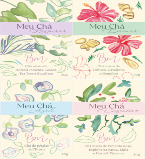 A linha Meu Chá – Bruna Marcon reúne blends para infusões desenvolvidas para integrar os protocolos de bem-estar da Clínica de Saúde & Beleza Natural Bruna Marcon. Cada composição associa plantas tradicionalmente utilizadas em práticas integrativas, com formulações pensadas para momentos específicos de cuidado e presença.