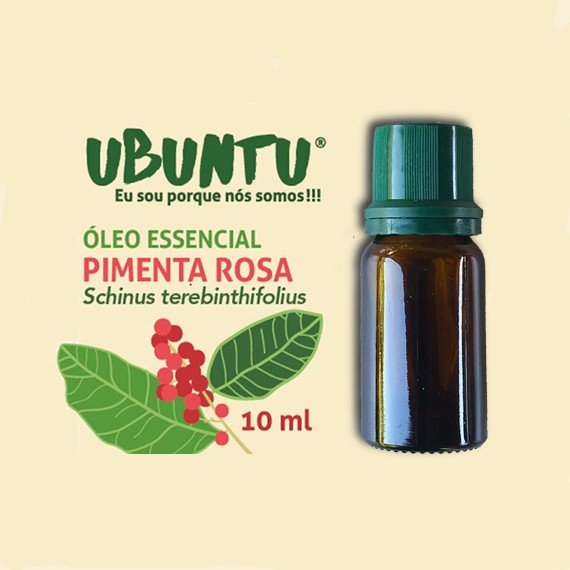 O Óleo Essencial de Pimenta Rosa Ubuntu® é obtido por destilação artesanal por arraste em vapor de folhas, ramos apicais e frutos de Schinus terebinthifolius, cultivados em Sistema Agroflorestal Agroecológico. Apresenta aroma fresco, levemente picante e balsâmico, e é utilizado de forma diluída em aromaterapia e cosmética natural. Produto 100% puro.